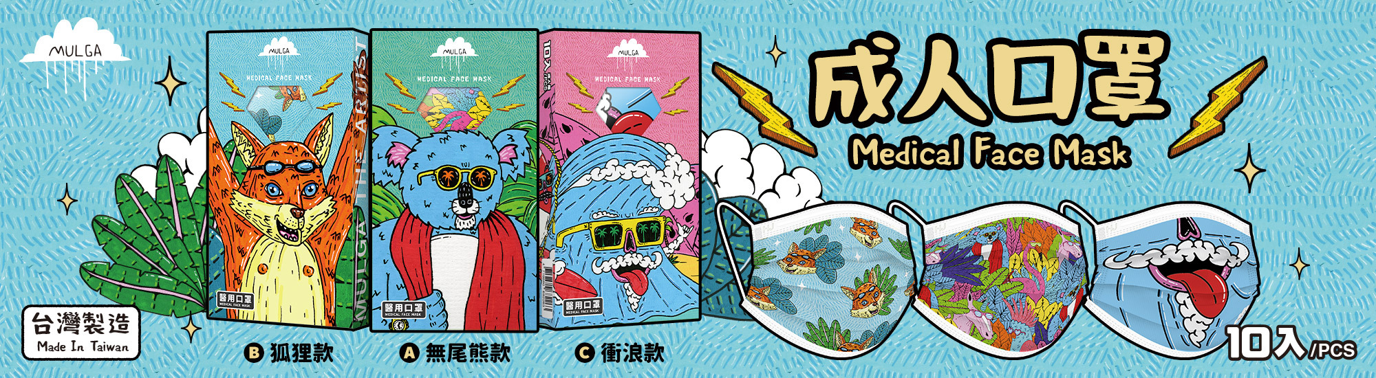來自澳洲的街頭人氣藝術家Joel Moore獨家授權Mulga系列口罩,華淨獲得獨家販售共推出無尾熊、衝浪及狐狸款,獨特創作以及復雜線條和鮮豔色彩的標誌性風格而聞名,時尚大膽的妳/你趕緊來吧~