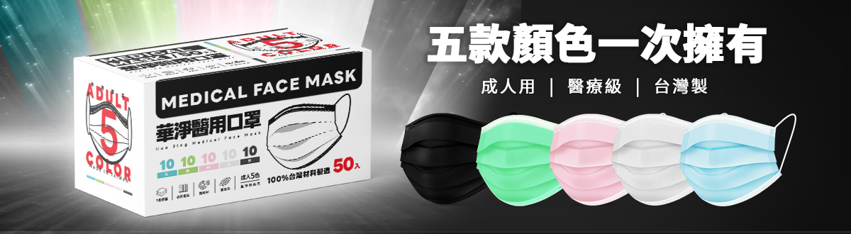 華淨醫材成人平面醫用口罩 5色綜合款販售中!